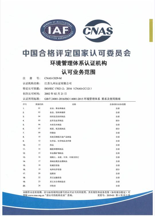 • 環(huán)境管理體系認(rèn)可業(yè)務(wù)范圍-中文1