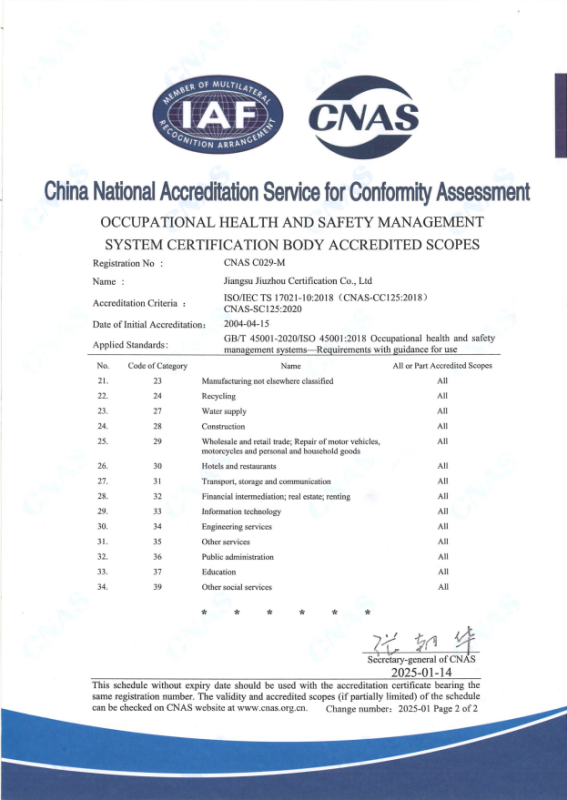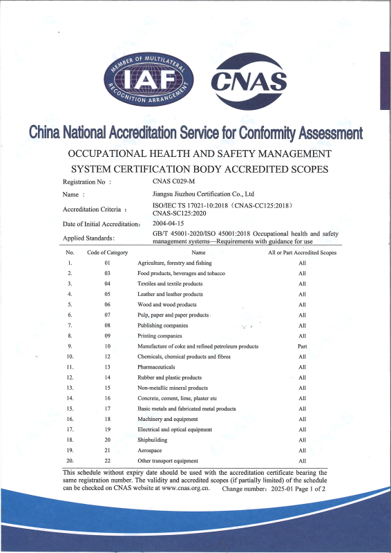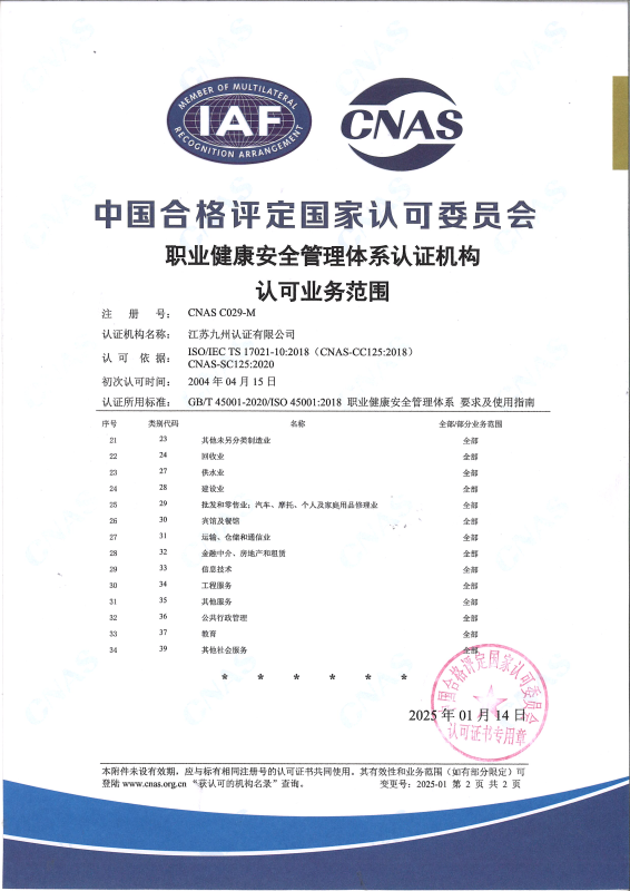 • 職業(yè)健康安全管理體系認(rèn)可業(yè)務(wù)范圍-中文2